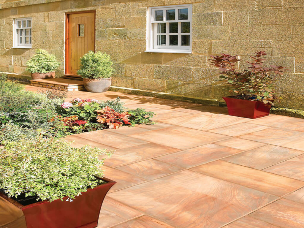 Sandstone Paving creates exciting interior and exterior living spaces with low maintenance and amazing durability. Stone patios are much more durable and cost-effective than wood decks, with a fraction of the maintenance..