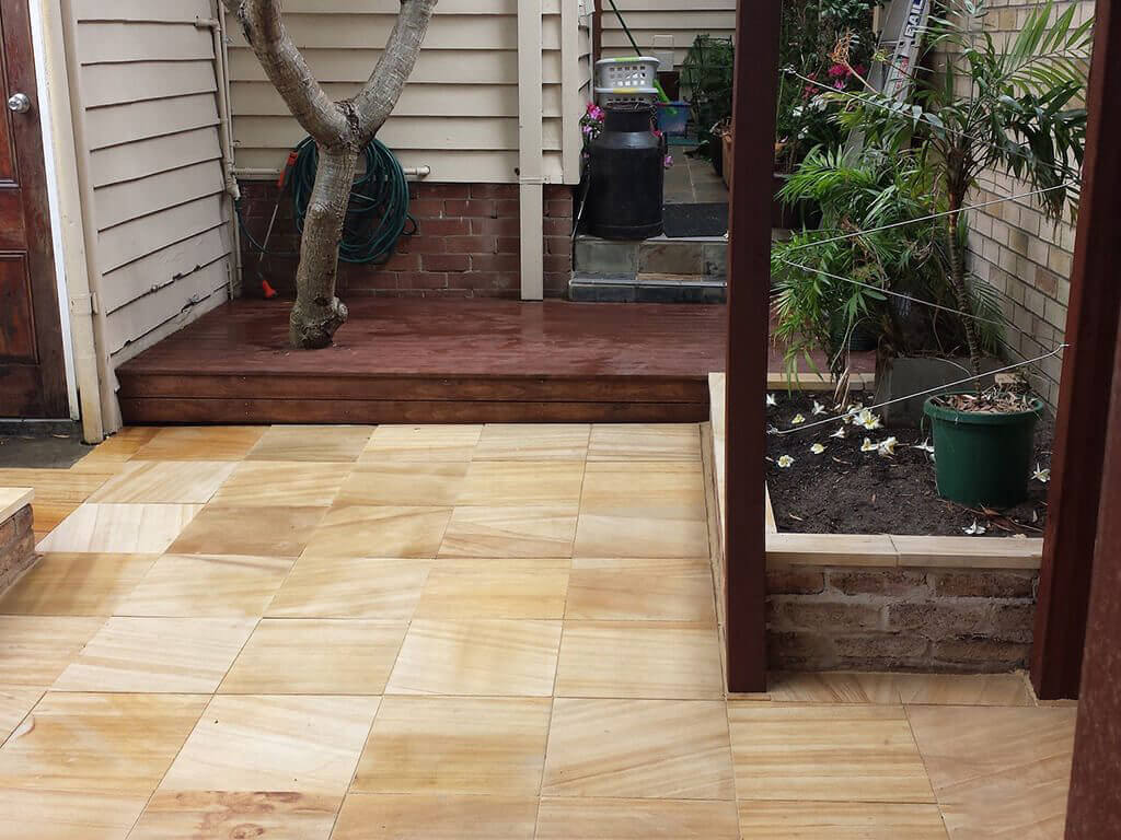Sandstone Paving creates exciting interior and exterior living spaces with low maintenance and amazing durability. Stone patios are much more durable and cost-effective than wood decks, with a fraction of the maintenance..